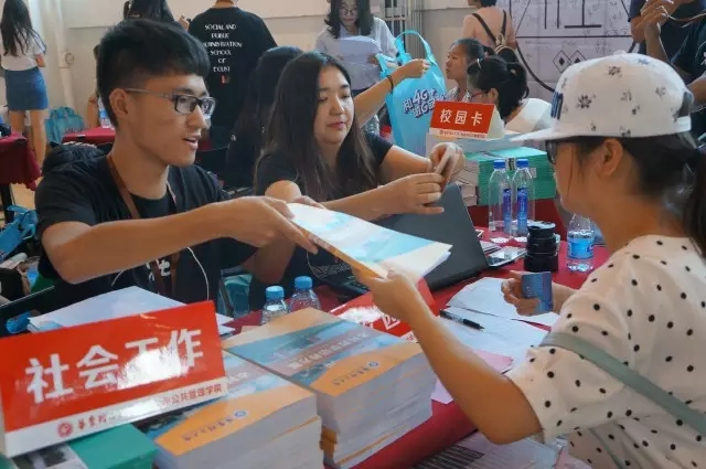 随后老师们和志愿者们帮助大家进行新生注册登记。各专业老师,学院领导和校长都抵达体育馆,现身报到现场,让新生们充分感受到华理的热情与温暖。之后,兴奋的新生们被邀请在学院的签名版上留下自己的名字,这是新生们进入38238a威尼斯欢迎你这个大家庭的纪念,也是这个大家庭对新生们的欢迎。