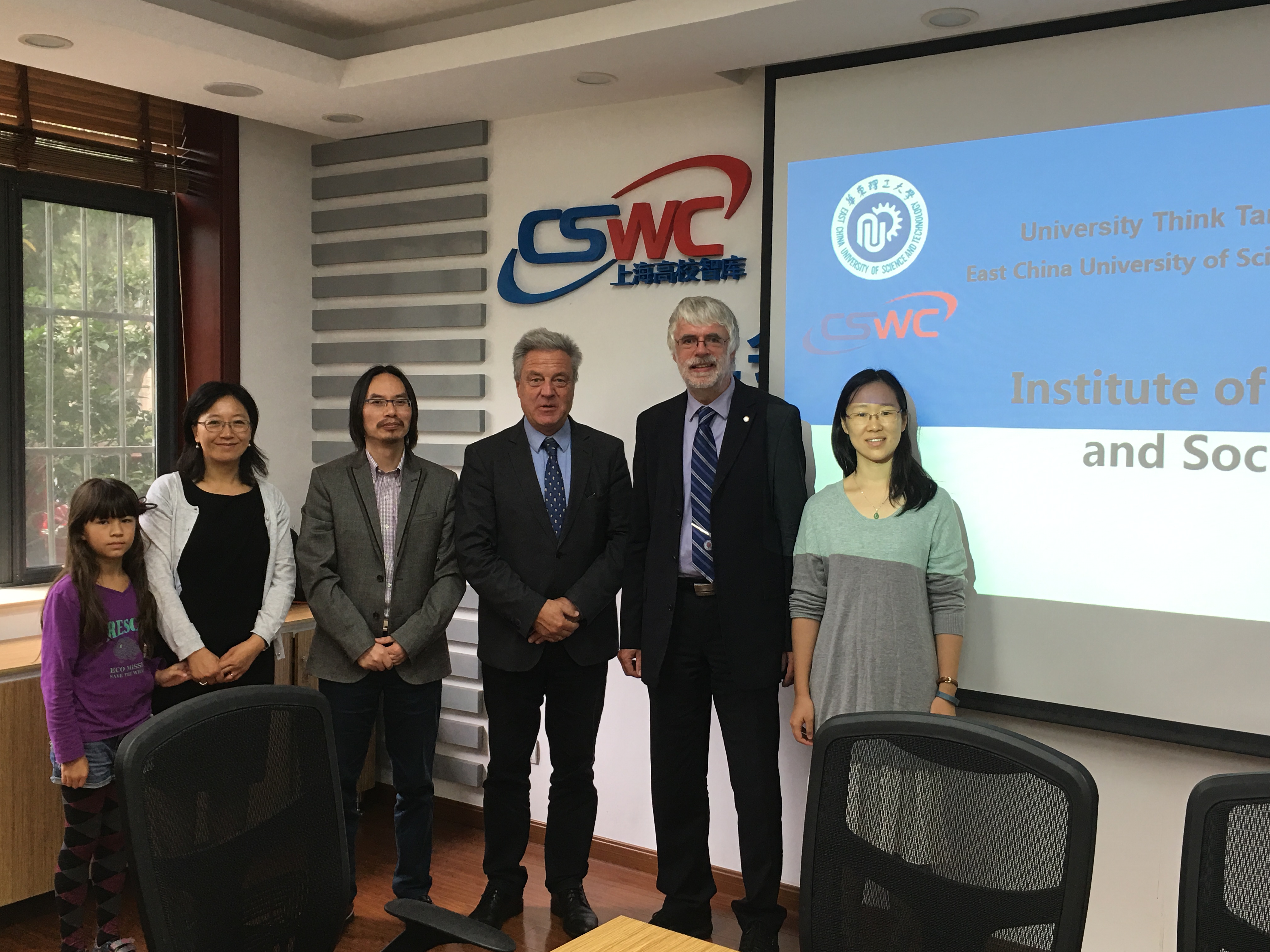 10月13日上午,德国萨尔大学校长Volker Linneweber一行3人访问威尼斯官网“上海高校智库”社会工作与社会政策研究院,38238a威尼斯欢迎你院长、社会工作与社会政策研究院副院长何雪松教授等进行了接待。首先,徐祝敏研究员介绍了智库发展状况 ;随后,Pro.Volker Linneweber介绍了萨尔大学的社会学科研究状况,提出“环境心理学”等课程与智库灾后重建、社会环境改善的研究密切相关,欢迎威尼斯官网社会学院的学生前往萨尔大学进行学习。何雪松教授也介绍了威尼斯官网明年计划开展的”国际发展“英文课程,欢迎萨尔大学的学生前来学习,双方就一些具体细节进行了交流,为今后的合作奠定了基础。