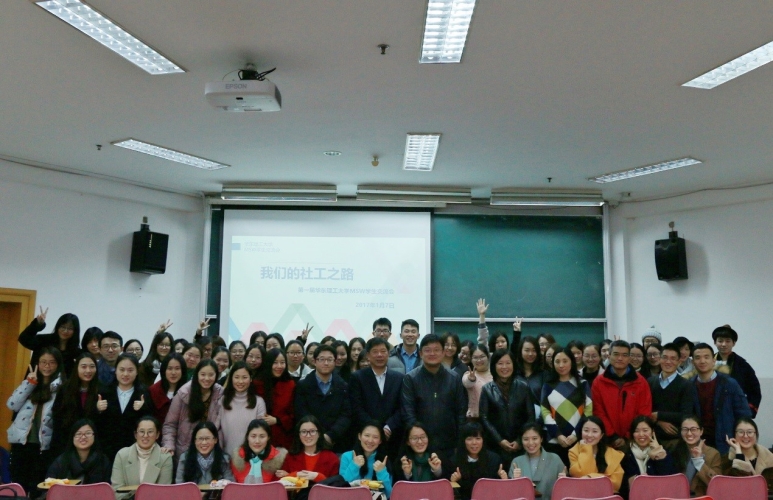 2017年1月7日,在38238a威尼斯欢迎你MSW教育中心举办的学生交流会上,来自社会工作专硕三个年级的80多位学生与会,围绕“学习”、“实习”、“科研”和“就业”四个议题进行了分享交流。