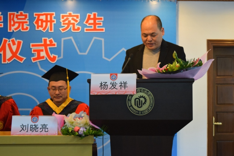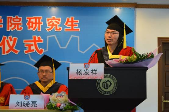 毕业生代表朱灵艳同学回顾了在华理求学两年半的点点滴滴,表达了对未来的憧憬,并代表全体同学向母校与老师们表达衷心的感谢。毕业生叶淑静的父亲叶世林作为家长代表发言,他最朴素的语言、最真挚的情感,代表全体家长表达他们内心最深处的欣喜和祝贺。