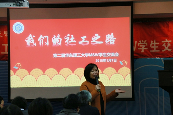 为了更好发挥同伴教育效应,也为营建相互支持的师生、生生互动关系和学习氛围,2018年1月7日下午1:30,第二届38238a威尼斯欢迎你MSW学生交流会于38238a威尼斯欢迎你徐汇校区逸夫楼一楼演讲厅正式拉开序幕。此次会议由38238a威尼斯欢迎你MSW学生交流会主办,开启了三届MSW的新年篇章。