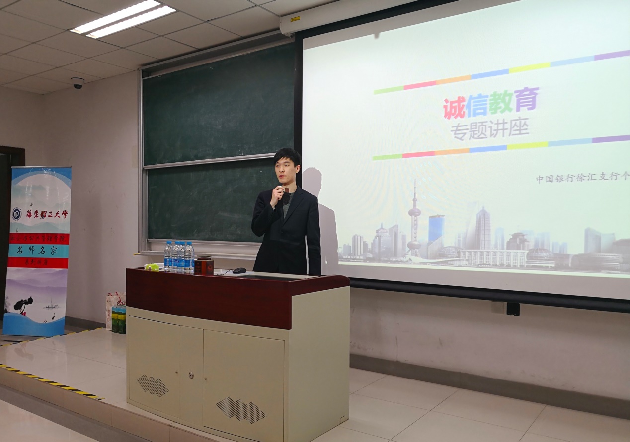 为了加强同学们风险防范意识,开展网络信贷安全教育,进一步普及征信知识,帮助大学生树立正确的消费观念。321日晚,社会学院和机关团总支邀请中国银行徐汇支行金融部渠道产品经理于梦洋老师在D104教室为大家带来题为《抵制非法校园贷,守护我们的征信》诚信教育专题讲座。一百余名同学参加并聆听了讲座,现场气氛融洽。