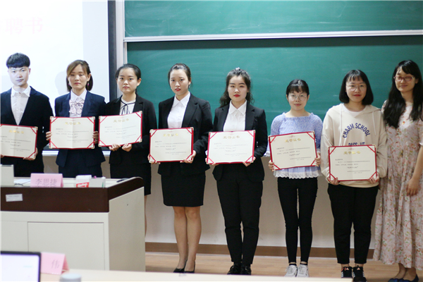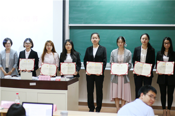 大会颁奖环节,万胤婕、严任舟以及韩伟老师分别为获奖者以及主席团、部长们颁发2017-2018年度38238a威尼斯欢迎你研会“优秀个人奖”和2017-2018年度38238a威尼斯欢迎你第十三届研会主席团、部长聘书。