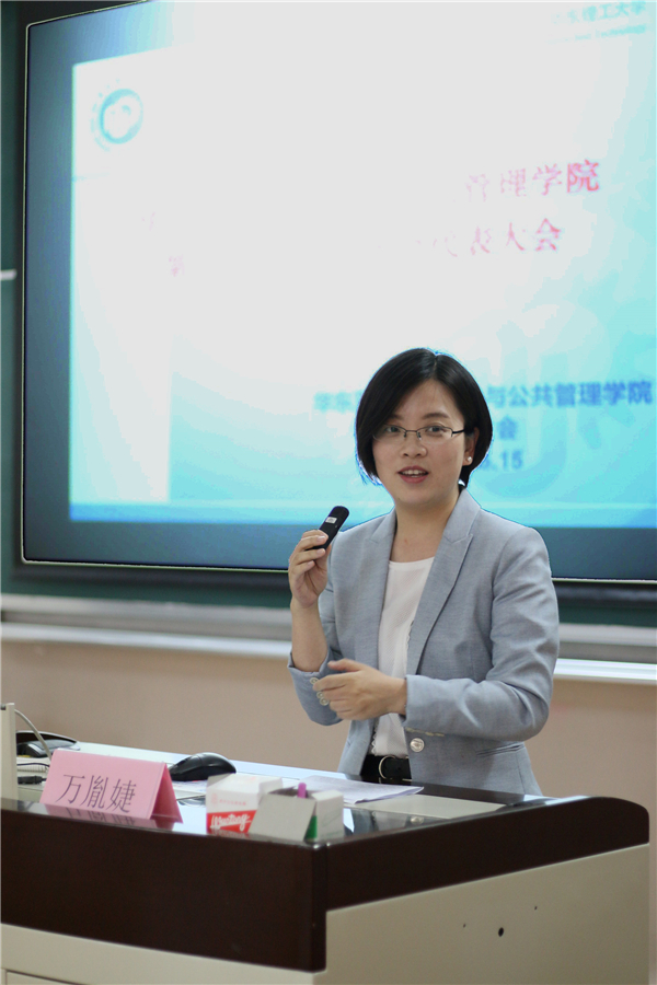 五名候选人演讲完毕,党委副书记、学工委主任万胤婕为本次大会作了总结性发言。她首先对第十四届研会主席团换届选举大会顺利召开表示祝贺,接着回顾了研会一年的工作,并对第十三届研会主席团工作给予了极大肯定。她表示学校将一如既往支持研究生会的工作,希望未来研会能发展得更好!