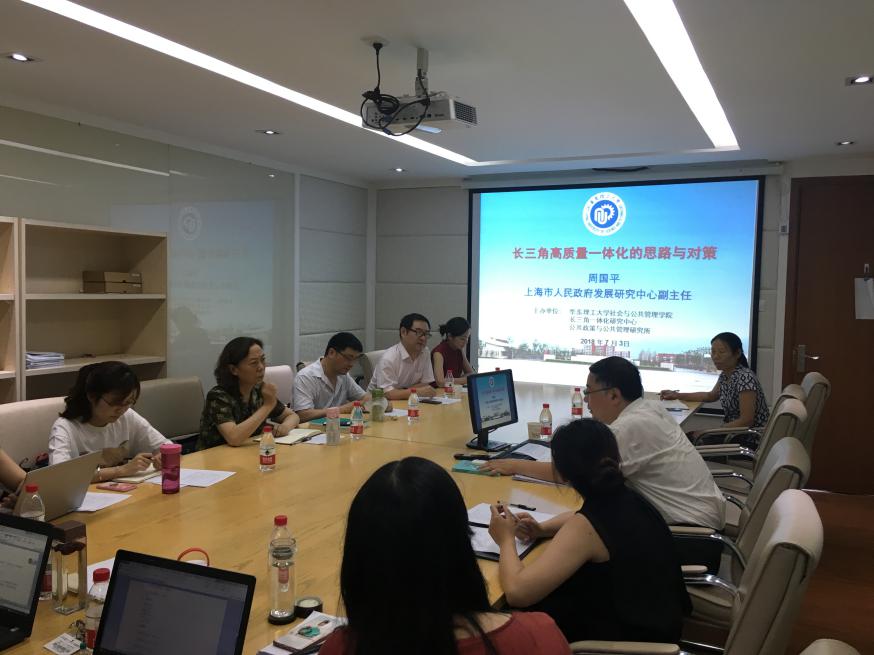 2018年7月3日,我院长三角一体化研究中心、公共政策与公共管理研究所联合举办的长三角一体化系列高层论坛第五讲在38238a威尼斯欢迎你322会议室顺利举行。本次论坛邀请了上海市人民政府发展研究中心副主任周国平做主题报告,题目是“长三角高质量一体化的思路与对策”。我院长三角一体化研究中心团队全体成员及博士生、研究生参加了会议。会议由长三角一体化研究中心主任纪晓岚教授和公共政策与公共管理研究所所长罗建平教授主持。