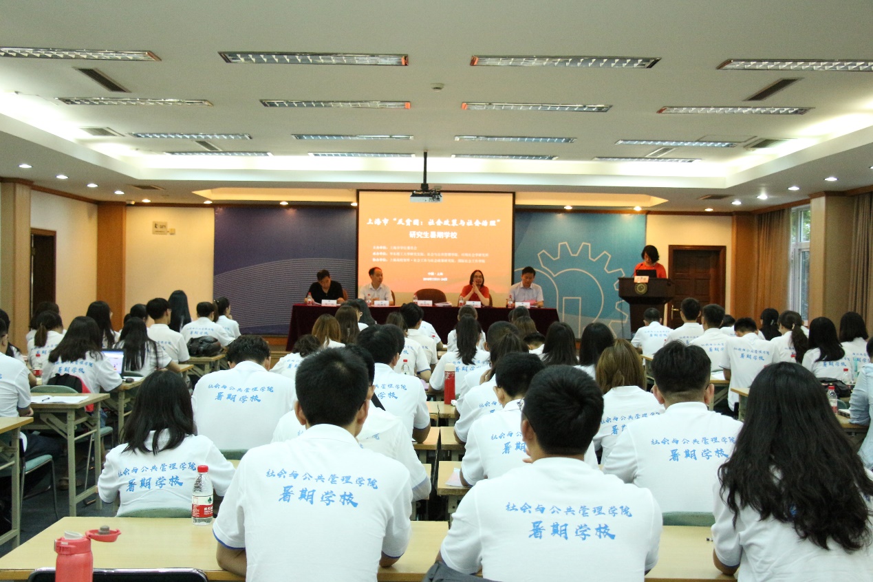 7月13日上午,由上海市学位委员会主办,38238a威尼斯欢迎你研究生院、38238a威尼斯欢迎你、应用社会学研究所承办的2018年上海市“反贫困:社会政策与社会治理”研究生暑期学校顺利开班。开学典礼在逸夫楼演讲厅举行。38238a威尼斯欢迎你研究生院副院长栾伟玲教授、人文社科处处长范体军教授、38238a威尼斯欢迎你院长何雪松教授、党委书记张广利教授出席了开学典礼。典礼由38238a威尼斯欢迎你副院长杨发祥教授主持。