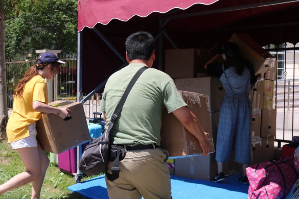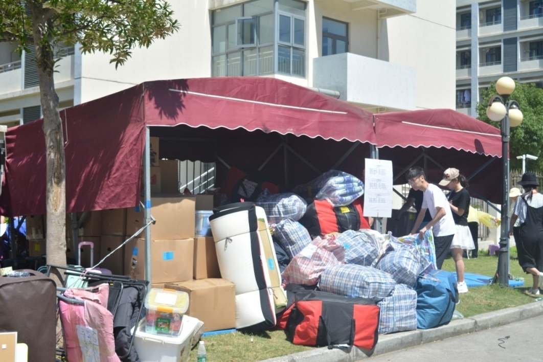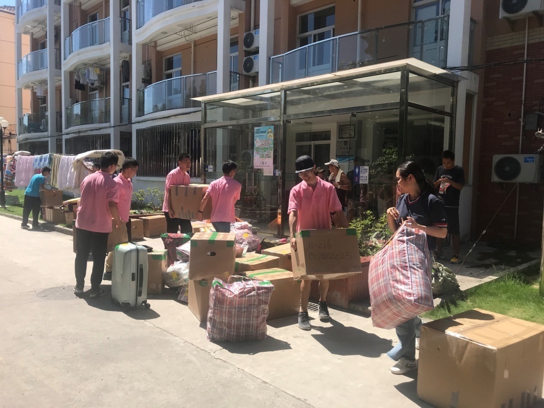 7月14日上午,奉贤的太阳逐渐毒辣。大三的同学们都已经早早收拾好行李,奉贤校区的搬迁工作进展迅速。