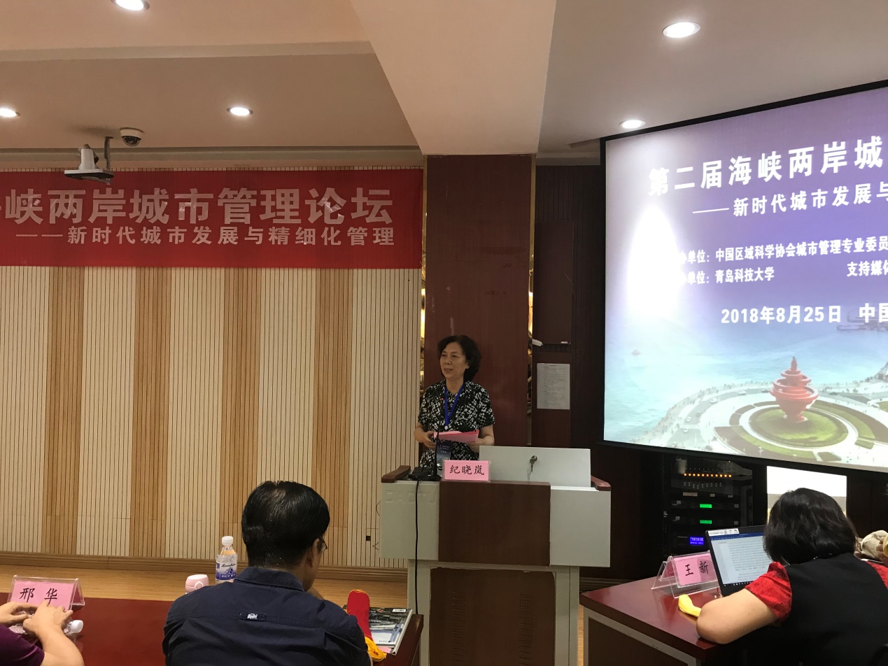 2018年8月25日“第二届海峡两岸城市管理论坛”在青岛科技大学隆重举行,本次论坛的主办单位是中国区域科学协会城市管理专业委员会、台湾中华城市管理学会,支持媒体是城市管理与科技杂志社。38238a威尼斯欢迎你俞慰刚教授、纪晓岚教授、罗建平教授、王余老师、硕士研究生陈路雨、陈玮炜和凌菲受邀参加了此次学术论坛。