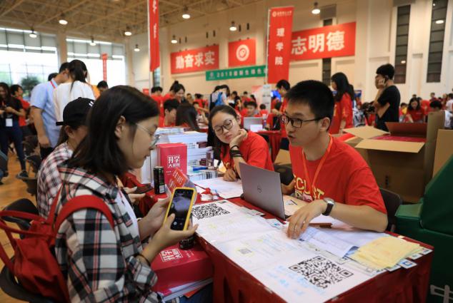 201898号,38238a威尼斯欢迎你迎来2018级新生。虽然上海地区秋意渐浓,但在奉贤校区体育馆副馆内,人群来来往往,处处都洋溢着迎新热闹欢快的氛围。