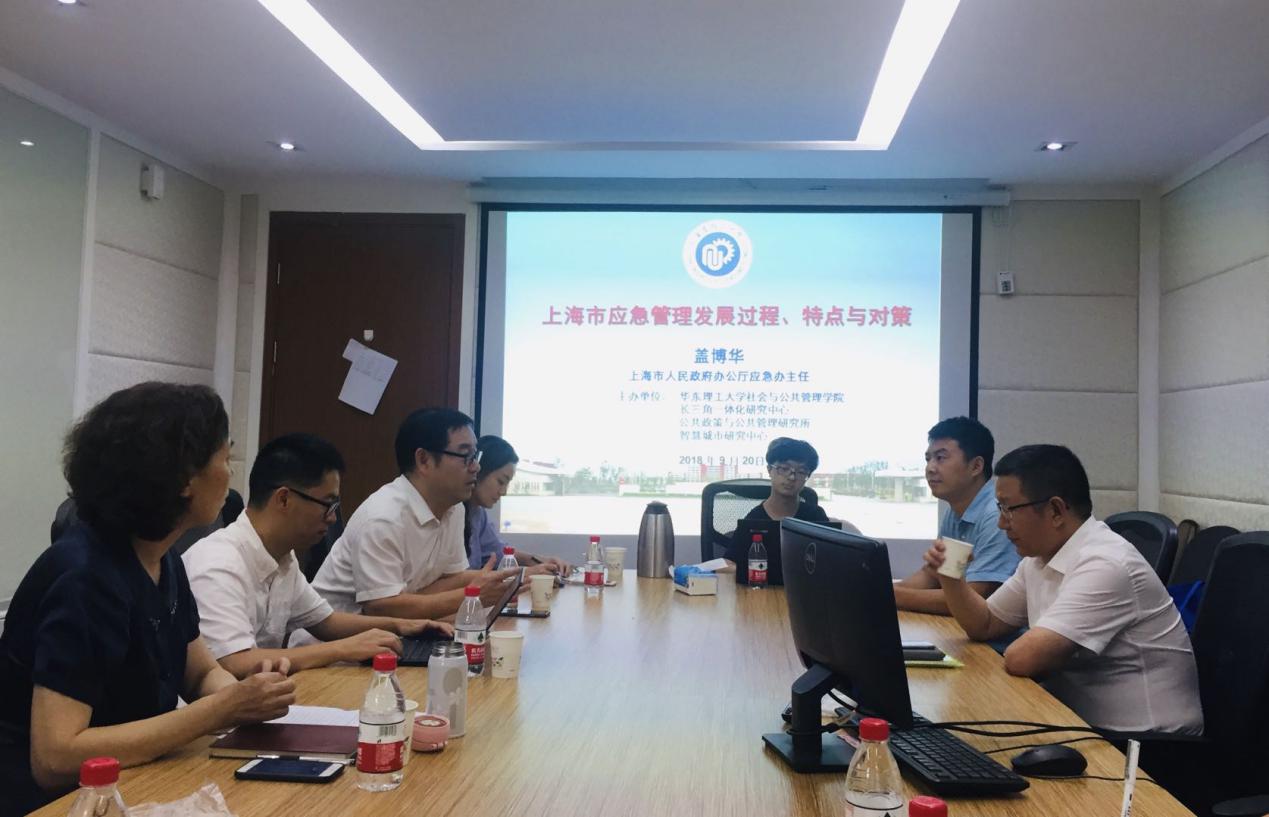 2018920日下午,我院长三角一体化研究中心、公共政策与公共管理研究所以及信息学院智慧城市研究中心联合举办的长三角一体化系列高层论坛第七讲在38238a威尼斯欢迎你318会议室顺利举行。本次论坛邀请了上海市人民政府办公厅应急办主任盖博华做题为“上海市应急管理主要经验与对策”的主题报告。我院长三角一体化研究中心主任纪晓岚教授、人文社科处副处长唐有财教授、公共政策与公共管理研究所所长罗建平教授,信息科学与工程学院智慧城市研究中心主任赵文瑜教授,长三角一体化研究中心团队全体成员及博士、研究生参加了会议会议由纪晓岚教授主持。