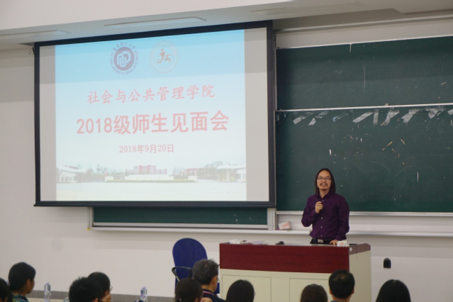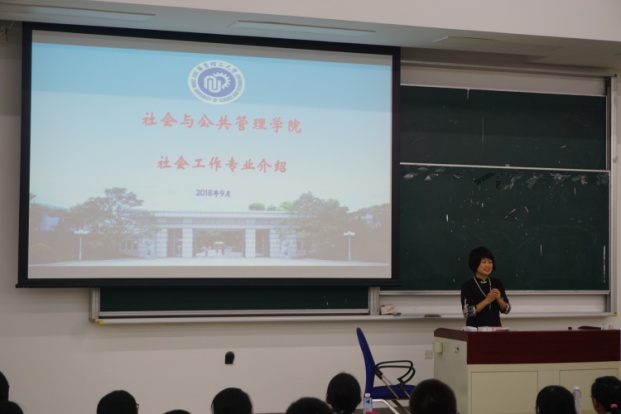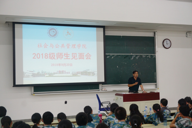 接下来,副院长刘晓亮向新生们大致介绍了本科五个专业的整体情况,大类分流的办法与制度规定及学术研究的相关情况。各个系的老师依次介绍了社会工作、行政管理、社会学、公共事业管理、劳动与社会保障五个专业的概况、特色、师资力量及毕业方向等。