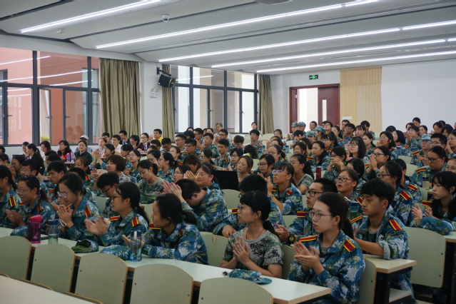 随后,来自社院1808的新生代表毕露露进行发言。他先表达了自己对大学的向往,之后分享了开学以来的经历及得到的来自学长学姐和军训教官的帮助并号召全体新生不辜负四年大学时光,让这四年成为一个关于独立、梦想、坚韧与勇气的故事。