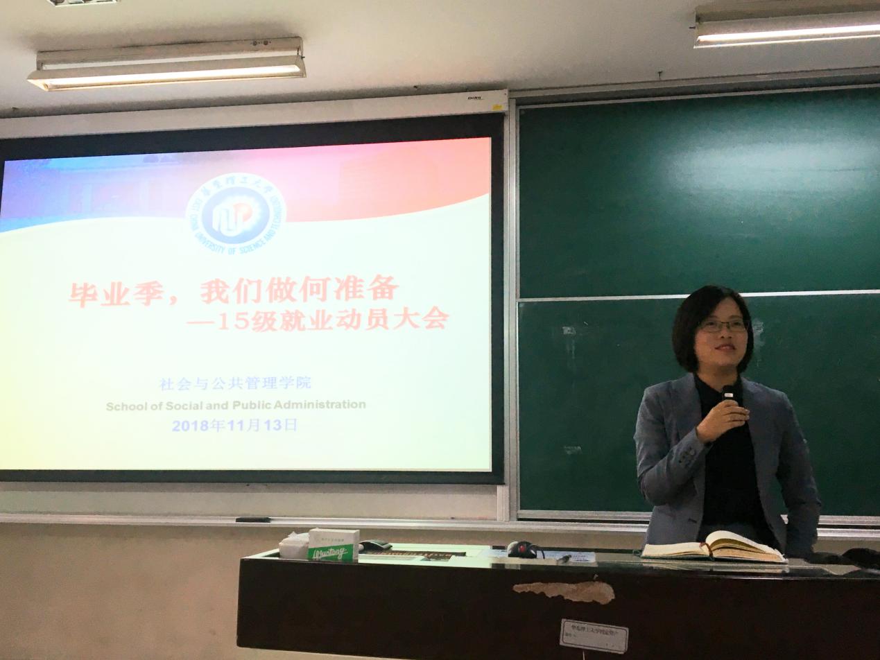 为进一步引导2019届本科毕业生认清当前就业形势、准确把握就业政策,11月13日中午,38238a威尼斯欢迎你在四教102召开毕业班年级大会暨就业动员会,对2019届就业工作进行广泛动员。会议邀请了校就业指导中心潘聪聪老师为同学们答疑解惑,分享毕业季的各项流程与时间节点。社会学院党委副书记、学工委主任万胤婕出席会议,会议由毕业班辅导员吴维祺主持。