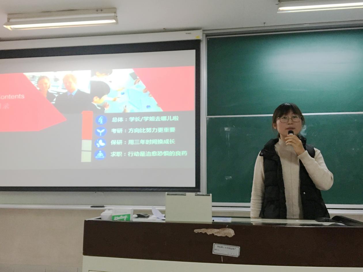 吴维祺首先通过详实的数据向同学们介绍了去年我院毕业生整体就业形势,并表示今年高校毕业生的就业形势依然十分严峻,希望学生正确认识当前形势,端正就业态度,调整就业预期,充分利用学校和学院的各种就业信息平台,以更加积极、主动、进取的心态投入到就业工作中;随后,主要向同学们介绍了毕业季各环节的重要任务,针对各时间段的注意事项进行重点提醒与关注,帮助学生及早了解毕业流程,做好毕业就业的时间安排。