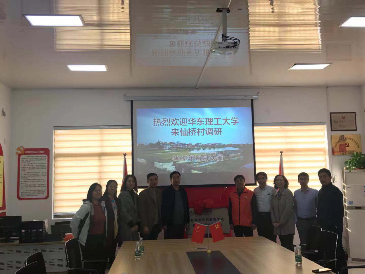 在“全国文明村镇”崇明区仙桥村,行政管理系教工党支部考察了当地农地流转、专业合作社建设、当地经济发展、美好乡村建设以及乡村治理等方面的情况,与对方探讨了合作的设想,并举行了教学科研实践基地挂牌仪式。