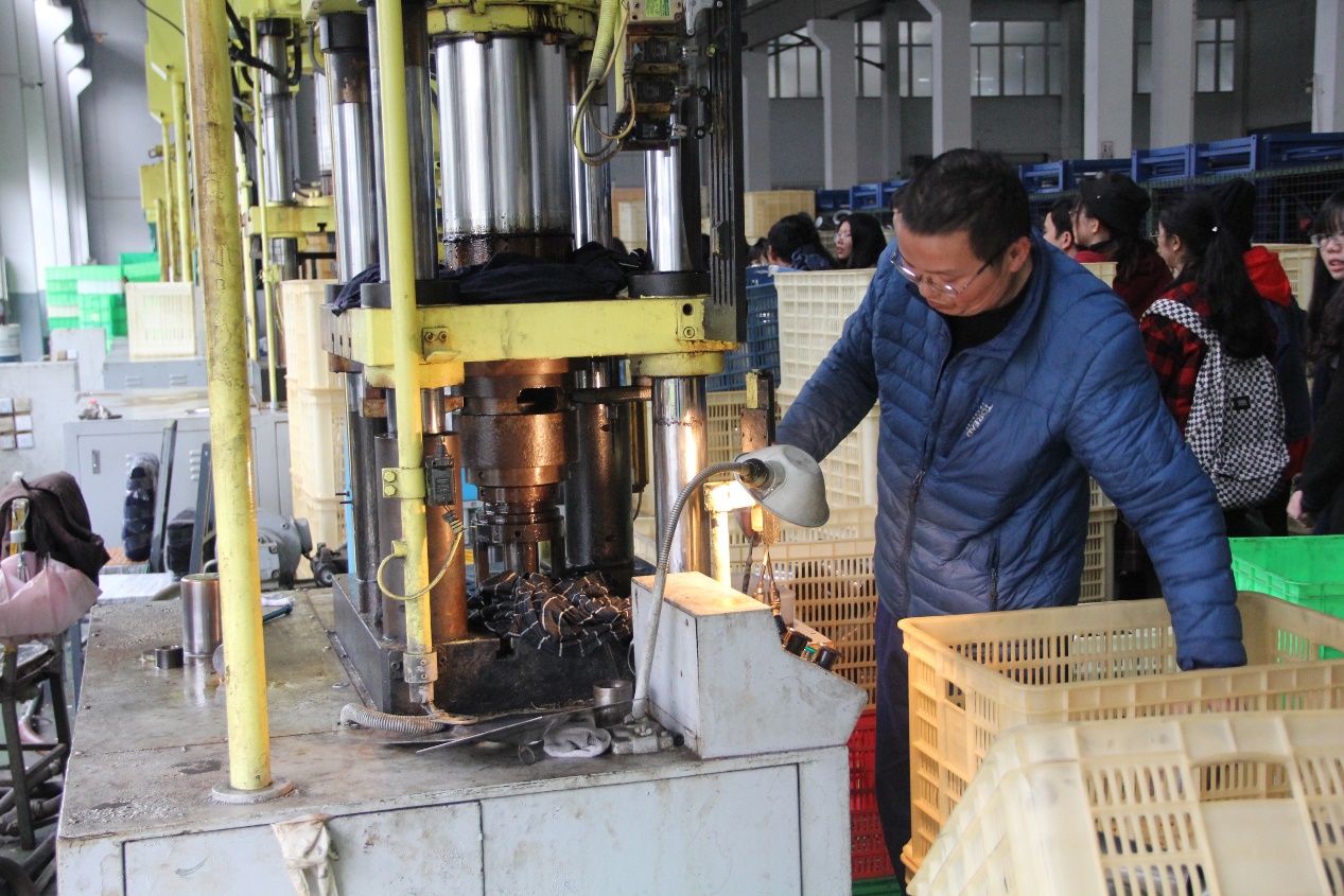 结束了对历史陈列室的考察,师生一行人于下午参观了星火村高新技术企业——上海宏晨家庭用品有限公司。大家欣赏了各种中高端保温杯成品,并在经理的带领下到了保温杯生产车间,参观保温杯的生产制作过程。通过参观企业,是的师生初步了解了星火村的工业发展概况,以产业发展来提供就业机会,带动当地企业转型。