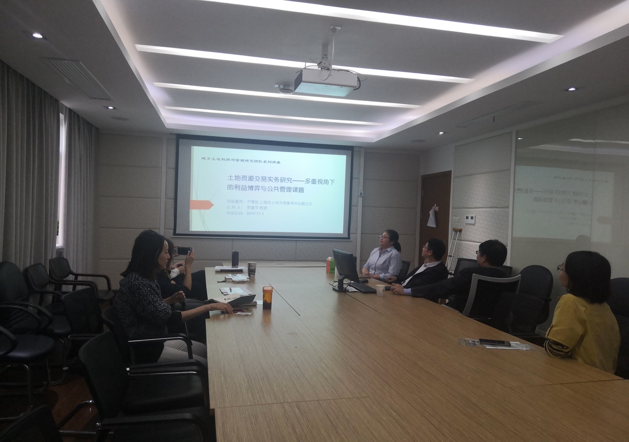 2019111日星期五下午130分,38238a威尼斯欢迎你公共政策研究所、城乡土地利用与管理研究团队联合邀请了上海市土地交易事务中心副主任、全拍卖师协会副会长尹厚俊主任,做了题为《土地资源交易实务研究——多重视角下的利益博弈》的讲座,由罗建平教授主持,讲座在学院324会议室举行。