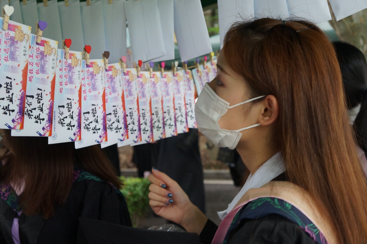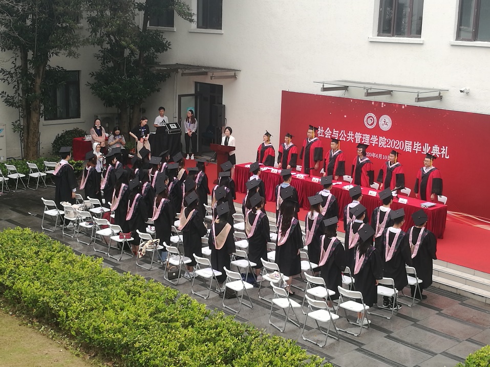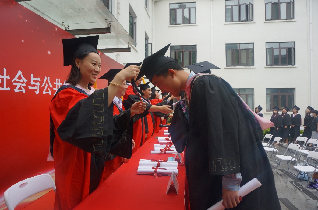 此次毕业典礼是社会学院第一次在户外分批次进行。社会学院的草坪经过精心布置洋溢着浓浓的毕业离别情谊。当天,许多毕业生在学院再次相见,互道离别,和敬爱的导师合影表达感激、“我要感谢支持我、指导我的恩师们,感谢跟我一起默默奋斗的同学们、朋友们” 手捧学院毕业礼物,行管161班的吴怡说,未来的人生道路必将恪守“勤奋求实,励志明德”校训,积极投身中华民族伟大复兴事业。