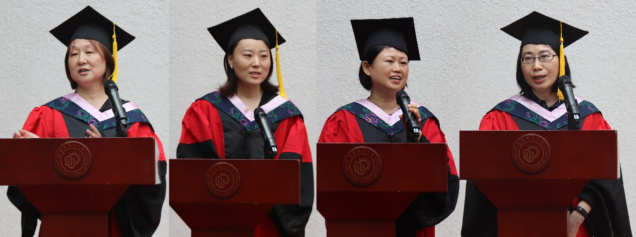 接下来,社会学院院长何雪松、公共管理系系主任郭圣莉、行政管理系系主任牛星、社会工作系系主任朱眉华、社会学系系主任黄玉琴分别在各场次中讲话。院长何雪松以“中和”和“位育”为核心,指出毕业生需要保持理性的思维和乐观的态度。他强调社院的宗旨是要推动国家的经济社会发展,承担更大的社会责任;郭圣莉老师则指出毕业生需要为成为最好的自己而奋斗不息;牛星老师以行管精神“行过韶华路,管领风光处”展开讲话,勉励毕业生永不言弃;朱眉华老师希望社工毕业生要做一个有情怀、有责任心、有担当的人;黄玉琴老师与同学们重新回顾了社会学经典理论,叮嘱全体毕业生注重身心健康、阅读经典文献、保持思考能力。