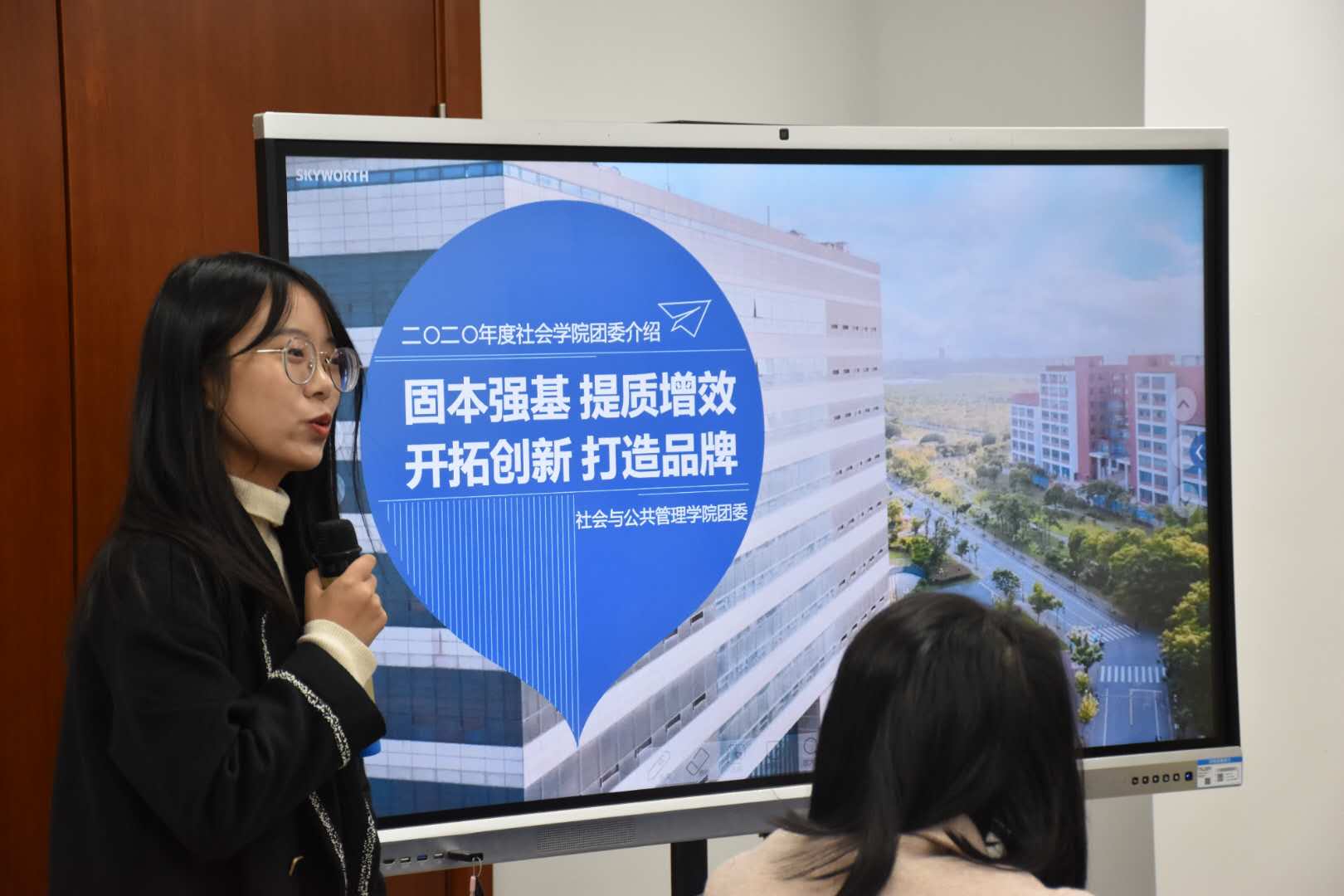 活动伊始,我院学生团委副书记陈晴涛介绍了我院近年来围绕社会实践和学院宣传等方面的工作,并展示了我院依托学科优势打造的品牌活动,对我院团学的基本情况进行了介绍。