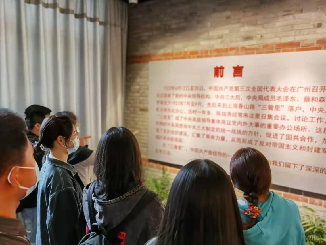 “探寻历史足迹,感悟革命精神,在中共三大后中央局机关历史纪念馆的参观中,我深刻感受到了地下工作者的艰辛与毅力,并进一步深入了解党的历史。革命先烈忠诚于党、心系于民,坚韧不拔、不怕牺牲,令我无比敬佩与赞叹。感悟红色精神,汲取奋斗力量,人民英雄永垂不朽,红色历史应当铭记,我们更要砥砺前行!”中国预备党员王星月在参观后这样感慨道。发展对象王宣言也表示,“今天参观了中共三大后中央局机关纪念馆,我对中共三大后的历史有了更深刻的了解。一幅幅图片和一行行文字让我了解到在“三曾里”留下的革命故事,重温了国共第一次合作的历史成果,真切感受到革命先辈不畏牺牲、拼搏奉献的精神。如今的美好生活正是革命英烈用鲜血换来的,我们定要发扬红色传统,传承红色基因,坚定为共产主义事业奋斗的决心!”